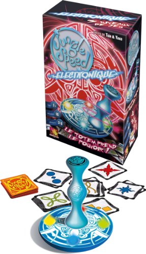Asmodee - JS06 - Jeu d'ambiance - Jungle Speed Electronique - Asmodee - Quand 2 sons identiques retentissent, il faut attraper le totem. Les cartes électroniques lues par le totem proposent plus de 10 ambiances différentes. Bruits d?animaux pour les plus jeunes, types d?instruments pour les plus grands, ou bruits dégoutants pour les plus déjantés - Mixte - A partir de 7 ans - Livréà l'unité Jungle Speed : Jeux de mains, jeux de malins ! Il y a fort longtemps, les membres de la tribu Aboulou vivant dans les moites et tropicales forêts de la lo