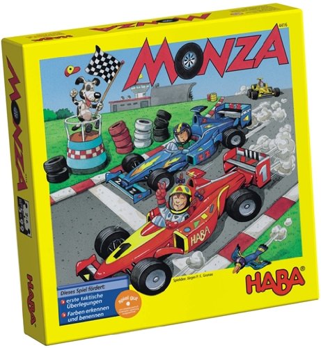 Haba - Jeux De Societe - Monza - A vos marques, prêts, partez : A Monza, les petites voitures de course foncent à toute allure sur le circuit. Pourtant elles n'avancent pas avec des moteurs puissants mais uniquement avec une bonne tactique et un peu de chance aux dés.
