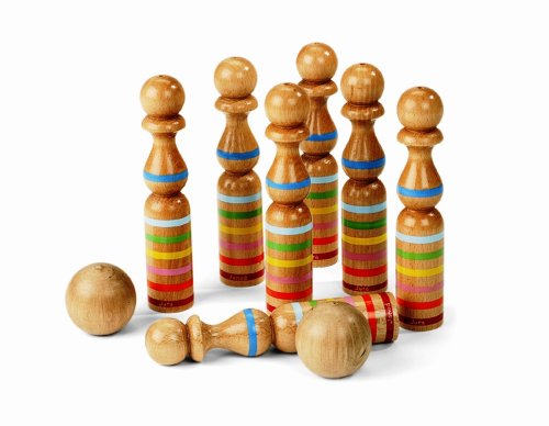 Janod - J03009 - Jouets En Bois - 7 Quilles Rubanees Arc En Ciel 24 Cm - Ce magnifique jeu de quilles en bois massif ravira les petits et les grands et offrira à chacun l'occasion de prouver son adresse. Juratoys Janod . - 7 quilles + 2 boules - Matière : bois massif - Hauteur : 24 cm - Rangement : filet ou seau (selon les arrivages)