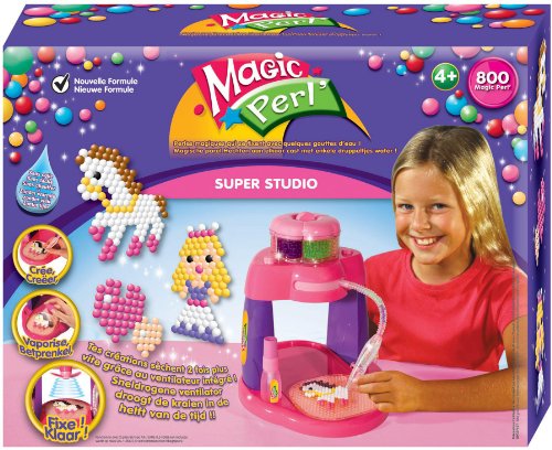 - Contenu du packaging : 800 perles Magic Perl', des supports, des modèles, un spray, 2 plateaux (1 droit / 1 diagonal) et 1 livret d'instructions.