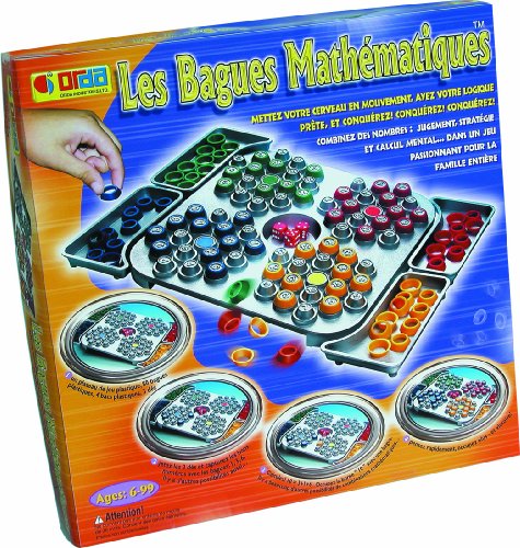 - Descriptif produit : Un jeu original de stratégie et de calcul, où il faut combiner (par opérations de calcul) les chiffres inscrits sur les dés pour déposer les bagues sur le nombre correspondant de sa zone de jeu.