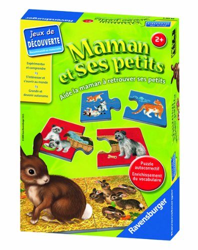 Ravensburger - 24312 - Jeu éducatif premier âge - Maman et ses petits - Jouer à associer les bébés avec leur maman ! Dans ce jeu ludique pour les plus petits, il y a 12 mères et leurs petits. Comme les bébés, ces petits s’éloignent parfois de leur mère, mais les larges pièces de puzzles autocorrectives aident l’enfant à réunir la famille !