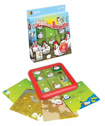 Smart Games - SG 430 FR - Jeu de Société - Les Poules ont la Bougeotte - 48 Défis - Faites glisser les tuiles transparentes représentant les poules de manière à ce qu'elles couvent tous les oeufs présents sur la fiche défi choisie. C'est un jeu de voyage par excellence, les pièces ne peuvent pas tomber du plateau de jeu!!
