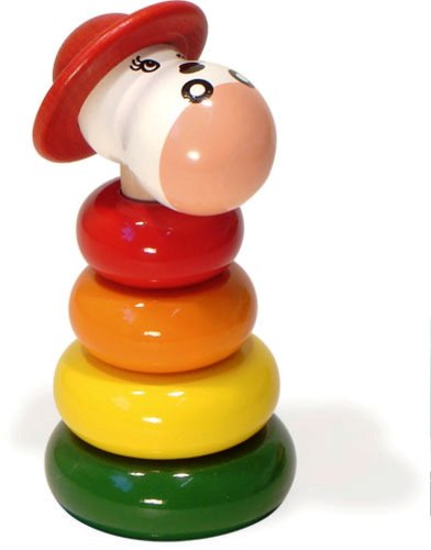 Vilac - Jouets en bois - ROSY empilable 4 anneaux - Rosy La Vache empilable en bois : Entièrement en bois, Rosy la Vache est en bois et est composée de 4 éléments à empiler sur sur le support. Avantage du produit : Un classique. Une première approche des formes et des couleurs. Dimensions : Hauteur : 15,5 cm Pour les enfants de : A partir de 1 ans