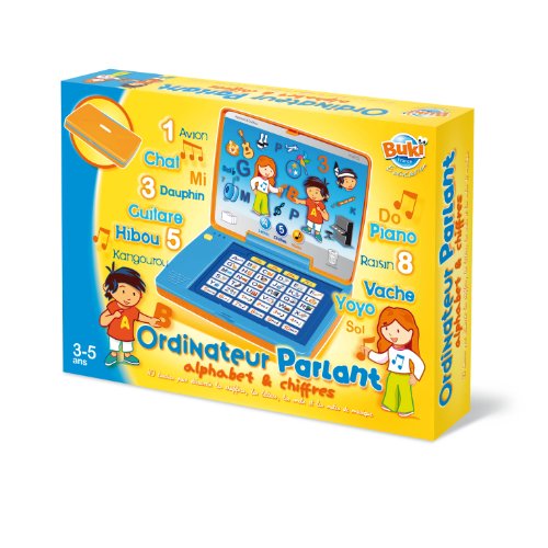 Buki 8961 Jeux électronique Ordinateur parlant alphabet/chiffres - Un premier ordinateur pour les jeunes enfants. 40 touches tactiles pour apprendre les chiffres,les lettres et les notes de musique.