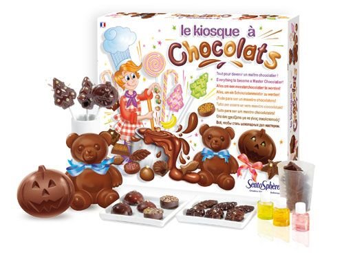 - Descriptif produit : Retrouve dans ce kiosque à chocolats tout le nécessaire pour devenir un maître chocolatier ! Ce coffret permet de mouler, décorer et aromatiser des chocolats pour tous les moments festifs de l'année : Noël, Pâques, anniversaires,... Grâce aux ustensiles, arômes, moules, perles, caramel pétillant et transfert décoratif, l'enfant se transforme en maître chocolatier et confiseur...pour le plus grand plaisir de toute la famille ! Contenu : - 4 arômes : banane, noisette, menthe, orange - 1 pot de perles or - 1 feuille de transfert pour pavés au chocolat - 1 sachet de caramel pétillant - 1 moule oeuf - 1 moule poule - 1 moule fritures - des tiges à sucettes - 4 pipettes - 1 cahier de recettes - et 1 notice explicative et illustrée