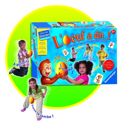 Ravensburger - 24273 - Jeu Educatif - L'Oeuf a dit...! - Fais ce qu’il te dit…mais surtout tiens-le bien droit ! L’œuf rit si tu le penches trop ! Jeu d’expression corporelle pour bouger et s’amuser, seul ou à plusieurs. 2 modes de jeu : un jeu d’adresse et de concentration : l’enfant observe les cartes et imite ce que fait le petit singe sans faire rire l’œuf ! Un jeu collectif pour bouger et s’amuser à plusieurs. Les enfants se passent l’œuf . En faisant habilement les positions énoncées sans le pencher sinon c’est le ga